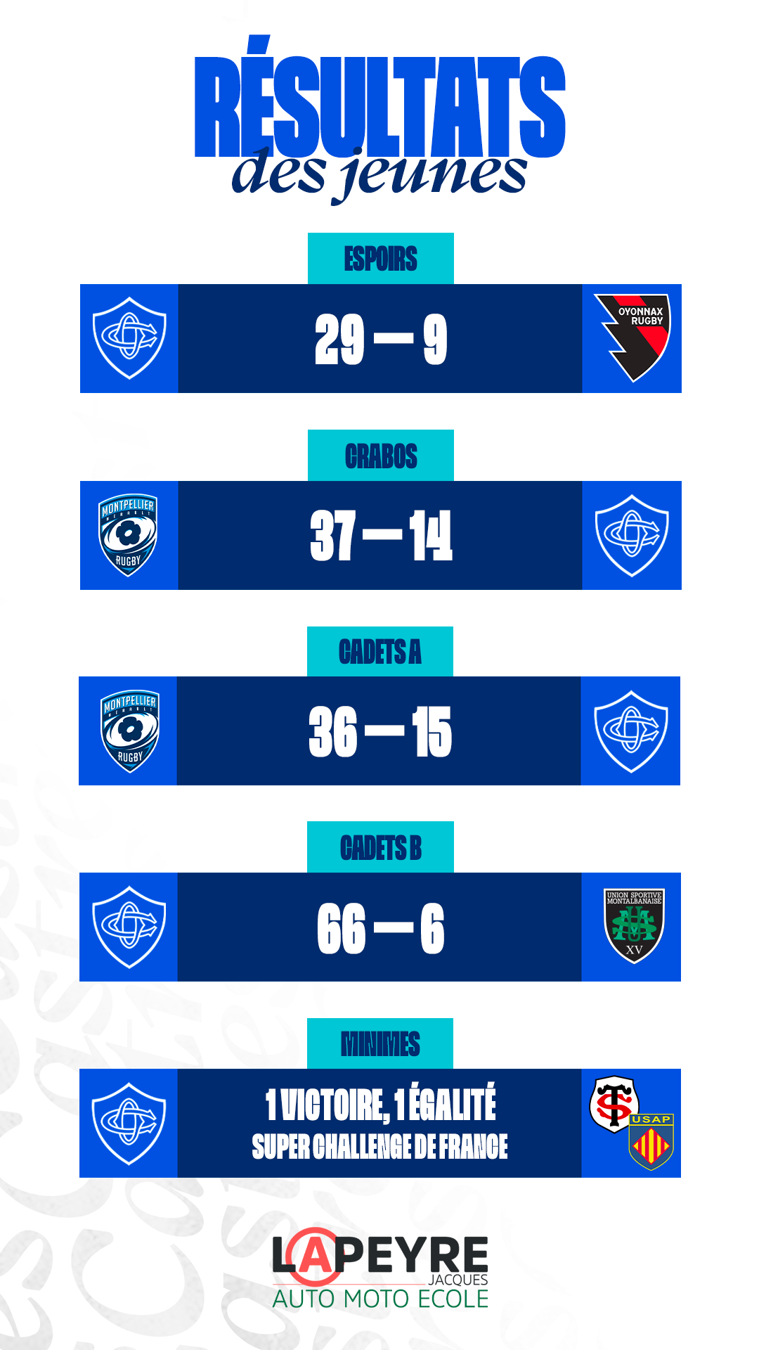 Retrouvez les résultats du week-end de nos équipes jeunes et féminines :