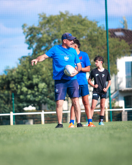 Cette semaine on a pris le groupe qui part pour la finale du VII, donc quinze enfants. On a essayé de travailler sur les longueurs de passes, des passes très longues. Après on a essayé aussi de faire du mouvement avec des courses de soutien, des courses de redoublées et après on a essayé de travailler quelques petites combinaisons : départ de touche, départ de mêlée pour essayer de surprendre au mieux les adversaires.