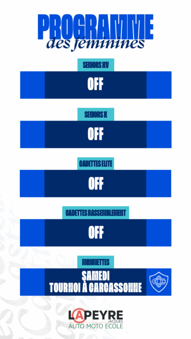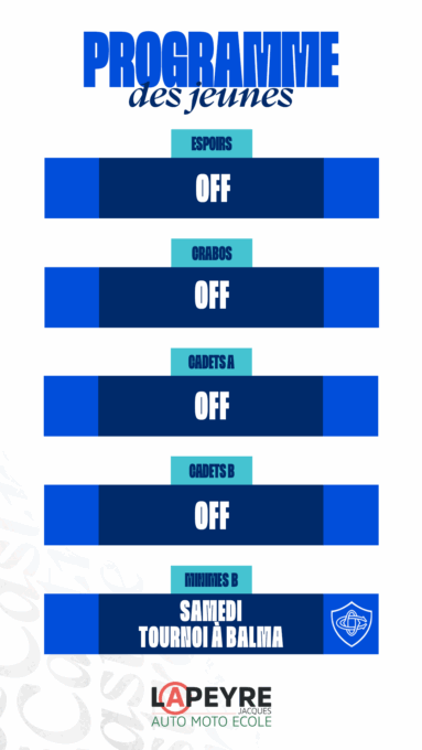 Découvrez l'ensemble du programme de nos équipes de l'asso avec notamment 2 quarts pour nos Espoirs et Cadets B !