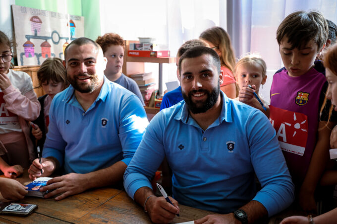 Ce matin, Florian VIALELLE et Captain CO ont partagé un bon moment avec les jeunes à l’école de la Pause.