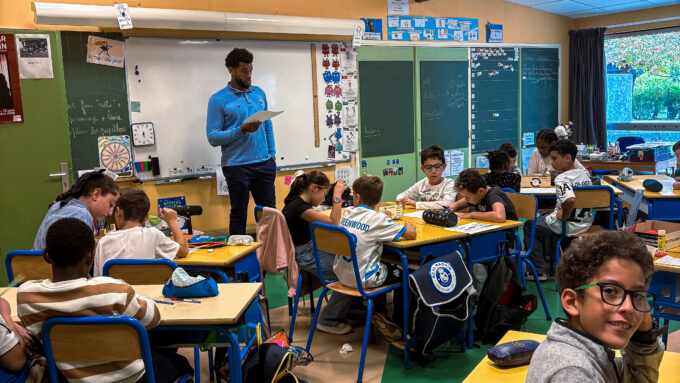Nos deux Olympiens ont captivé les élèves en abordant des thèmes fondamentaux comme la cohésion, la solidarité et l’entraide. Florian, grâce à son expérience de joueur professionnel, a partagé des anecdotes inspirantes, tandis que Captain CO a su mettre des étoiles dans les yeux des enfants avec ses gestes enthousiastes et sa présence joyeuse.