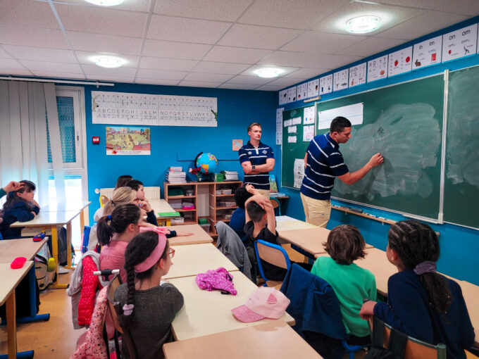 Mardi dernier, dans le cadre du CO va à l’école, nos deux Olympiens Nathanaël HULLEU et Adrien SEGURET se sont déplacés à l’école de Lempaut afin de répondre aux nombreuses questions des élèves de CE1 et CE2 sur le rugby et le professionnalisme.