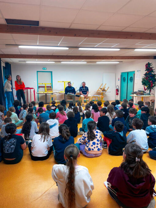 Nos deux Olympiens ont captivé les élèves en abordant des thèmes fondamentaux comme la cohésion, la solidarité et l’entraide. Florian, grâce à son expérience de joueur professionnel, a partagé des anecdotes inspirantes, tandis que Captain CO a su mettre des étoiles dans les yeux des enfants avec ses gestes enthousiastes et sa présence joyeuse.