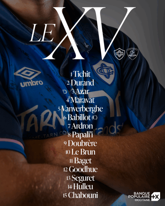 Avec notre partenaire officiel, Banque Populaire Occitane, découvrez la première composition de la saison pour la réception de la Section Paloise, ce samedi 6 septembre à 17h00.