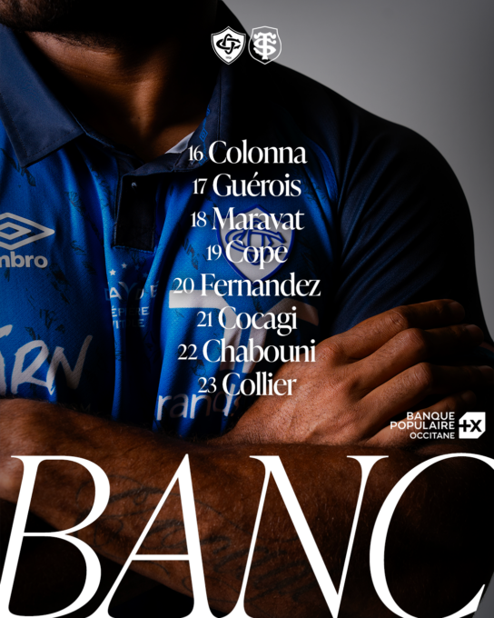 Avec notre partenaire officiel Banque Populaire Occitane, découvrez la composition pour la réception de Toulouse, ce samedi 18 avril à 21h00.