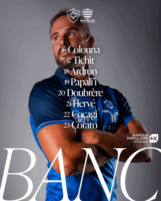 string(521) "Avec notre partenaire officiel, Banque Populaire Occitane, découvrez la composition pour la réception du Racing 92, ce samedi 4 octobre à 16h35.